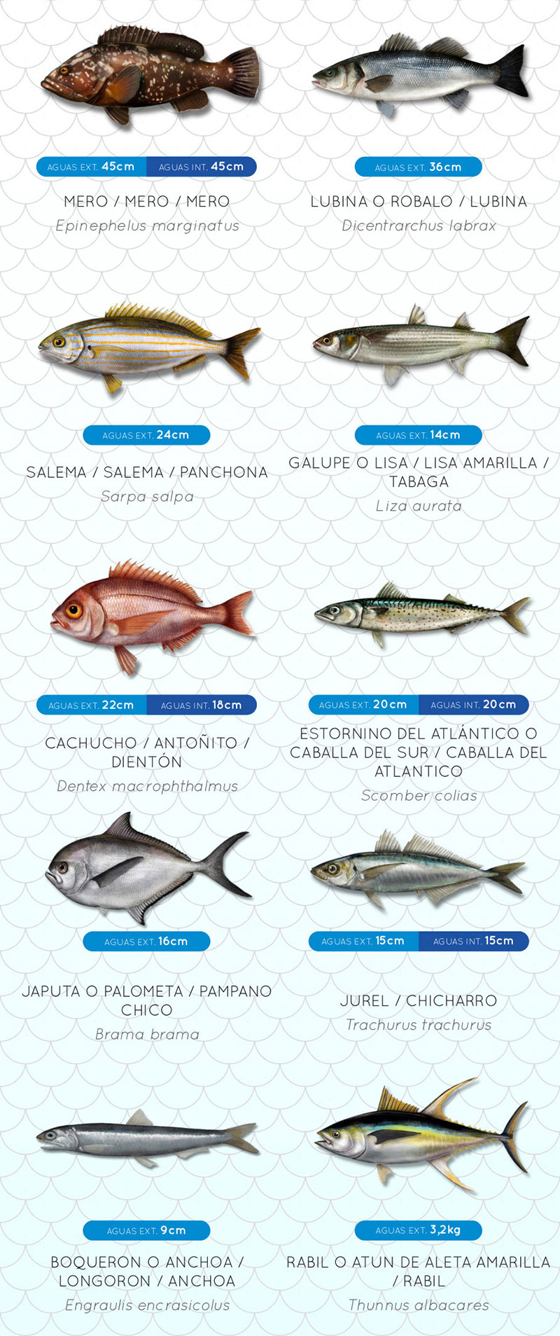 Tailles minimales des espèces communes dans les eaux des îles Canaries.